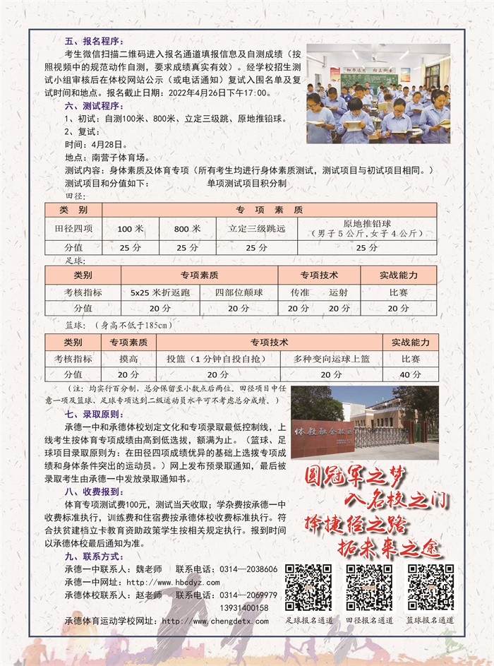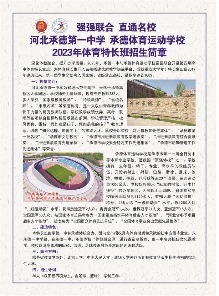 2023年體育特長班招生簡章