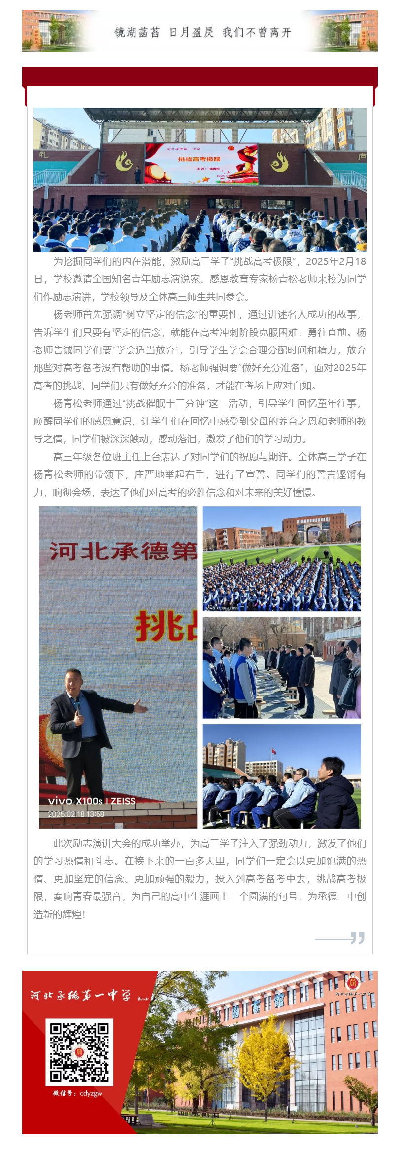百日沖刺 挑戰(zhàn)極限 河北承德第一中學(xué)舉行高三年級勵志演講大會