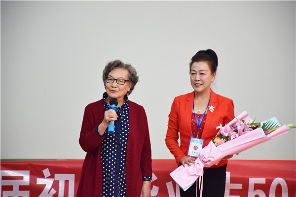 隨后在《老師,我想你》的樂(lè)曲中,69屆學(xué)生代表韓國(guó)慶、王幸、特克寒向母校張文嫻老師獻(xiàn)花。張老師深情地回憶了校友們當(dāng)年的校園生活,感嘆到時(shí)光飛逝,當(dāng)初風(fēng)華正茂的青年們經(jīng)歷過(guò)數(shù)十載的風(fēng)雨洗禮,為社會(huì)的發(fā)展做出了自己的貢獻(xiàn)后,現(xiàn)已是兒孫繞膝,作為大家的老師,很欣慰,很高興,祝愿大家健康快樂(lè),珍惜當(dāng)下每一天。