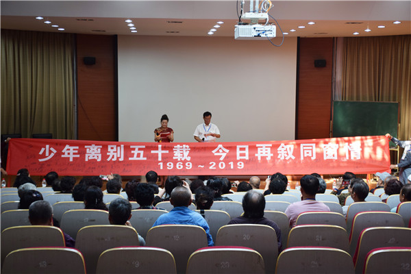 光陰荏苒風(fēng)華在,學(xué)子情深返校園。2019年9月19日上午9:00,承德一中69屆100多位校友懷著對(duì)母校的深厚情誼,在畢業(yè)50周年之際重返母校,舉辦畢業(yè)50周年聯(lián)誼會(huì)。校長(zhǎng)胡志鵬、副校長(zhǎng)趙鶴琳、督學(xué)潘國(guó)權(quán)、校友辦公室主任王冬梅、69屆任課老師張文嫻參加聯(lián)誼會(huì)。隆重的1969屆初中畢業(yè)生五十周年慶典活動(dòng)在高唱《國(guó)歌》中開(kāi)始。