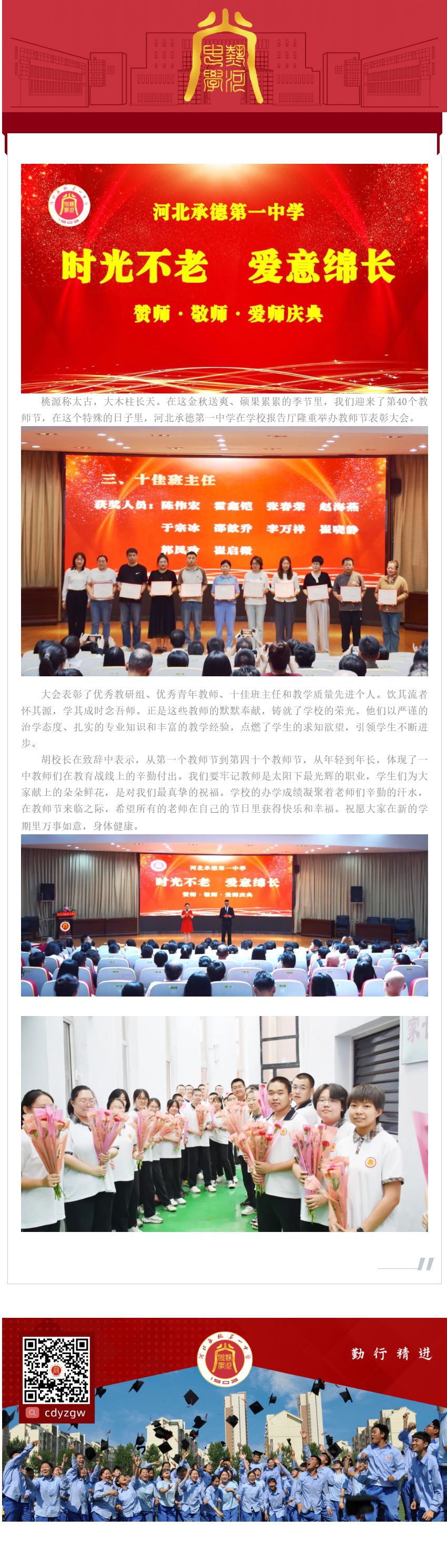 師道傳薪火 教育筑強國 河北承德第一中學舉辦教師節(jié)表彰大會